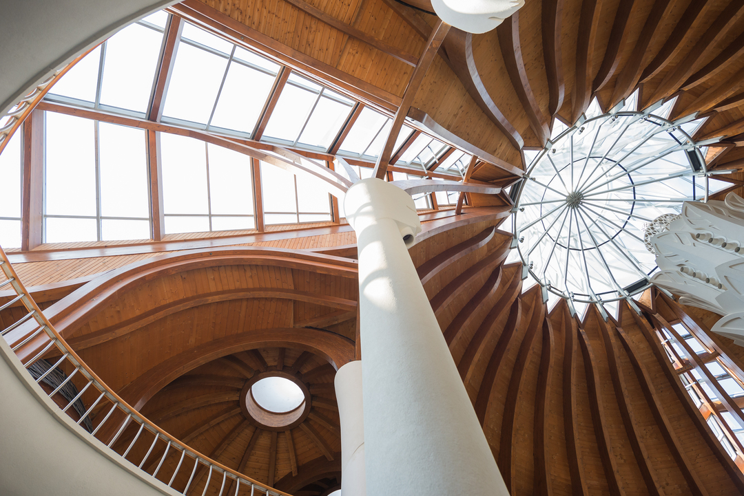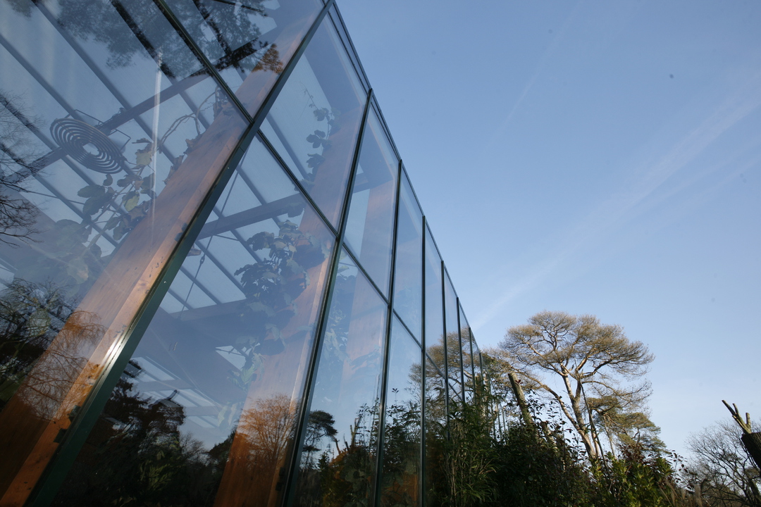 Nagy világos csarnokot szerettek volna létrehozni, de az üveget a súlya miatt ki kellett váltani